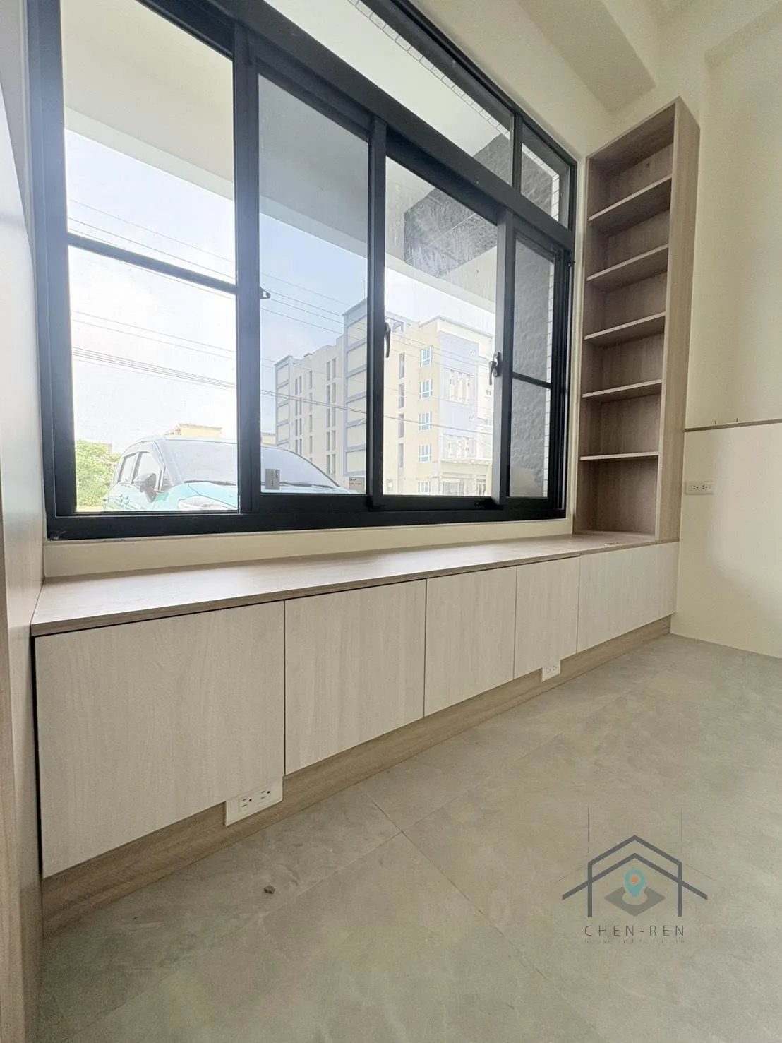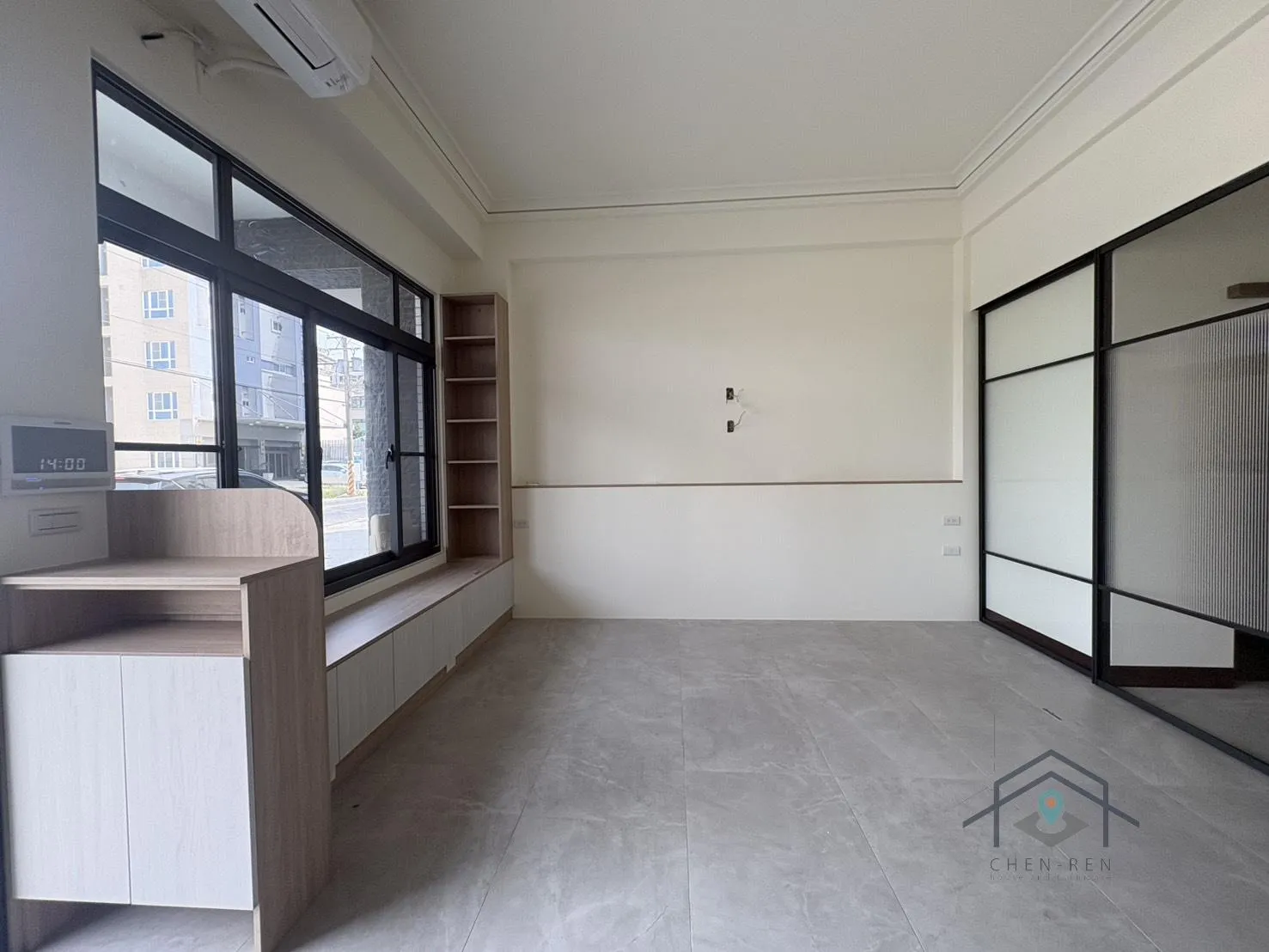 電視牆-黑雲岩;電視櫃-白艾夏櫚木